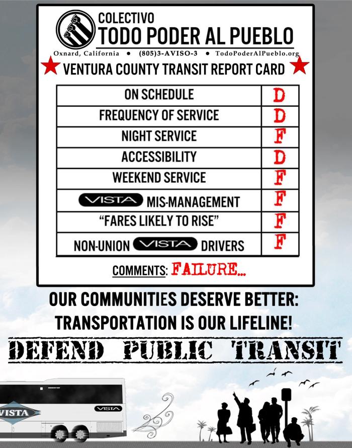 On July 1, 2012, VISTA (Ventura Intercity Service Transit Authority), which serves the basic needs of working-class Ventura County commuters, is scheduled for a “possible service disruption.” All 7 routes will grind to a halt and the buses we now use will permanently end service in the region.