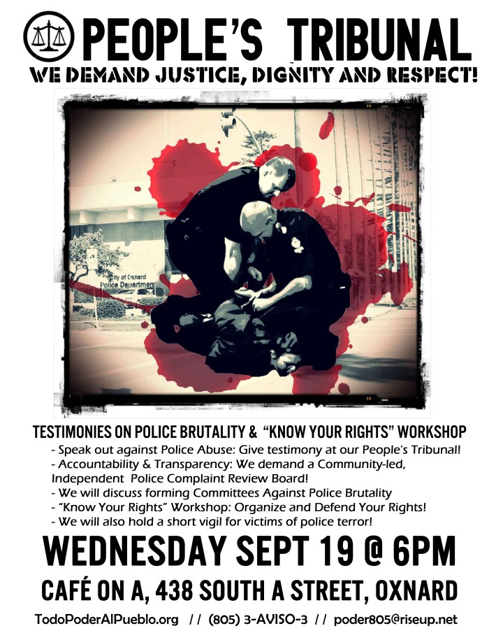 – We will document incidents from the community to form an official tribunal declaration in order to expose the pattern of police abuse. and with the goal of forming a Community Police Review Board.