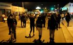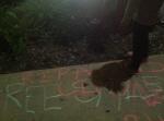 In front of police headquarters, protesters grabbed large pieces of chalk and wrote messages on the sidewalks such as, “Stop the police killing.” A woman wrote, “R.I.P. Robert Ramirez.”