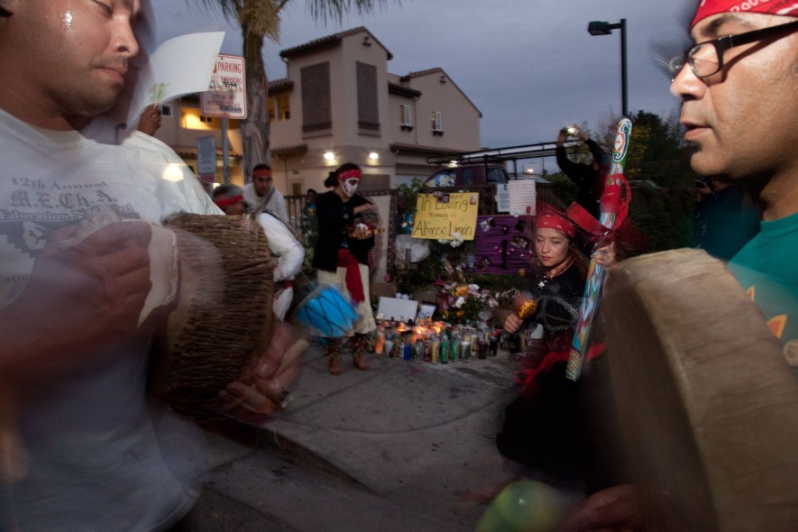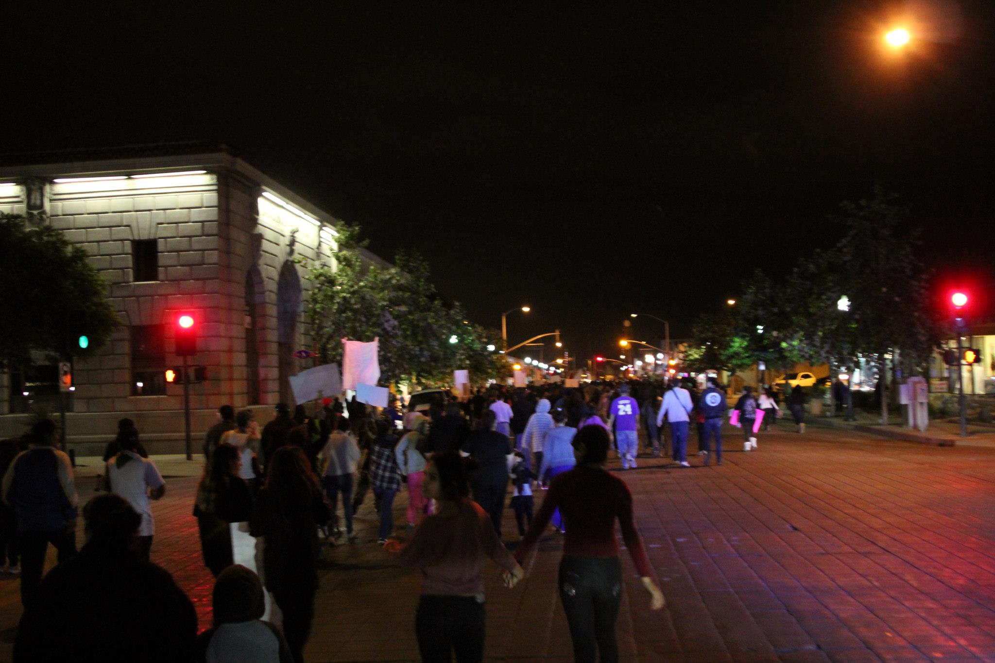 After about 20 minutes at the police station, the crowd marched to Plaza Park a few blocks away, where more speeches were given. Marchers then went east toward Oxnard Boulevard and north along the street. They blocked at least one lane of the boulevard as many made their way back to the La Colonia neighborhood, where Zepeda and Limon were shot.