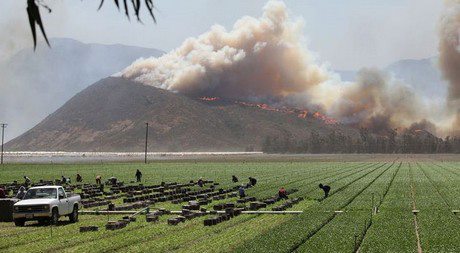 [NBC LA] Más de una docena de trabajadores agrícolas en el sur de California perdieron su trabajo después de salir de los campos de la semana pasada, forzados a salirse por el denso humo por el gran incendio forestal de Springs.