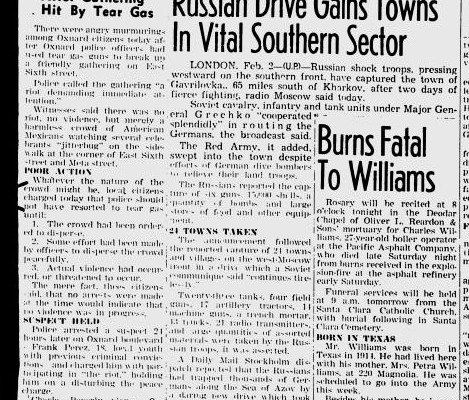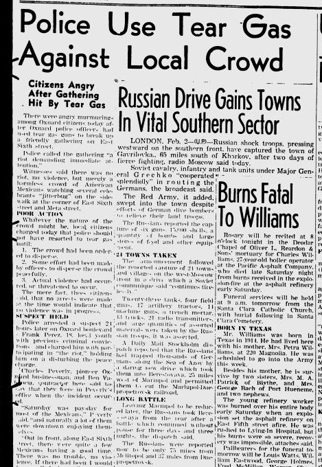 “Police use tear gas against local crowd,” Oxnard Press-Courier, 2 Feb 1942 (courtesy Luis H. Moreno, Ph. D http://luishmoreno.com/)