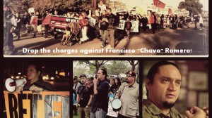 Above: Gerardo Limon, who narrowly avoided death at the hands of OPD, stands with placards of his dead brother at the site of Alfonso’s death during a family press conference, 6/11/14